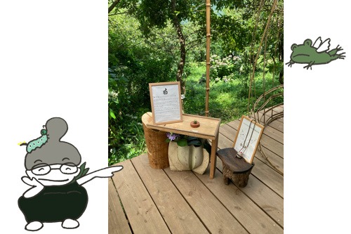 そんなお庭をながめながらのデッキに、おなじみのこの子もいます。