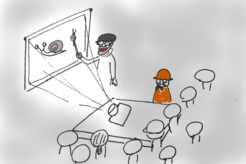 町長の見せる引き出しには指の先ほどの小さなカタツムリがわらわらいます。
