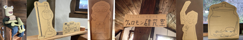 6つのケェロモンと、収納部に展示された礒野所蔵作品たち