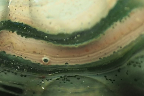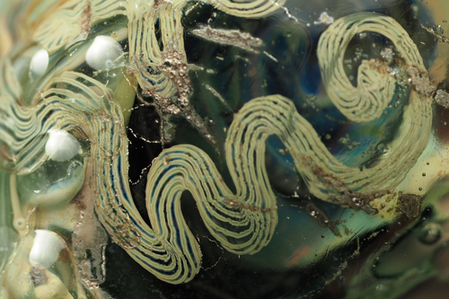細い象牙色の線の束は拡大すると、不思議な色で縁取られています