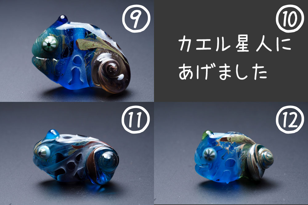 持ってるとカエル星人の世界につながる不思議な気分になったり、光にかざして目を楽しませるという効果があると思われます。