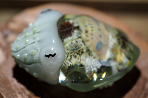 ぴかぴかガラスのヒレがステキ(ヒレのひとつにisoサインがあります)