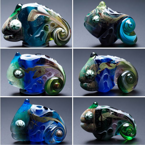 それは自然の中に溶け込む能力を宿すためのカメレオン的なカタチと、ケロナッチ数列の螺旋を表す渦巻きをあわせもっています。