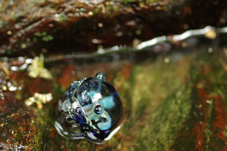 これが僕の世界。山の中の小さな川の溜まり。 僕のまわりでは、ワラジ虫やウズムシ(プラナリア)が嬉しそうに動き回ってる。 水面にはアメンボ。空から降ってきた葉っぱや花殻。 水辺から上を見上げると、高い高いところで樹々のすきまからお空が見える。 お空のむこうには別の星。