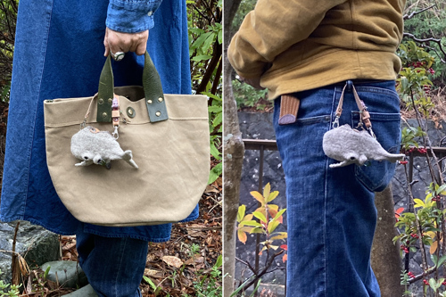 袋の中には、念のため紐などを取り付けておける穴の空いた革部品が付いています。