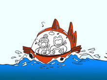 問題3)b 船のように浮いて進む (おくんち号は海の上を浮いてすいすい進みます)