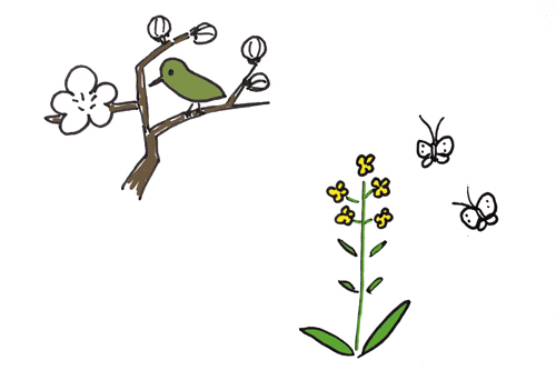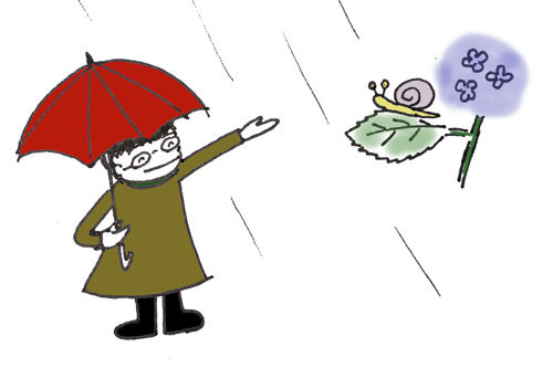季節を表すイラストなどの「雨と雨傘とアジサイとカタツムリ」の組み合わせは「梅とウグイス」「菜の花と蝶」みたいにみんなの心にしっかりと根付いています。