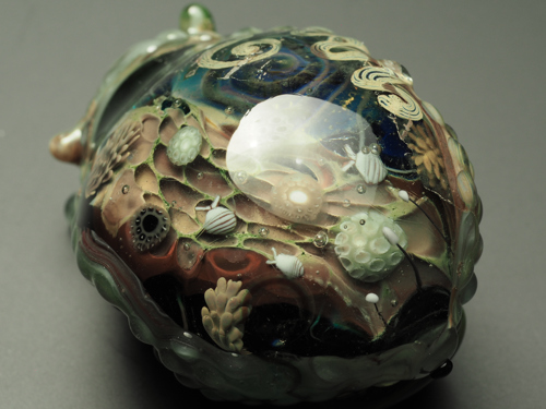 様々な部品や色に銀箔を重ねて生まれた肌には、象牙色の模様がたくさんあります。