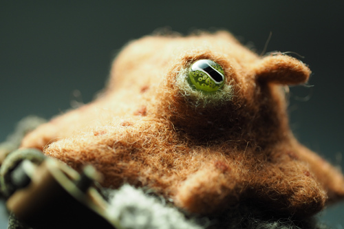 なめらかでしっかりとした仕上げ作業の前に撮影したので、この時点ではモケモケです。この後、お渡し時点ではなめらかでしっかりのケェロモンになります。