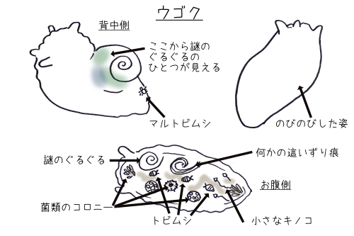 殻に比べ、大きな軟体部をもつのが特徴です。
