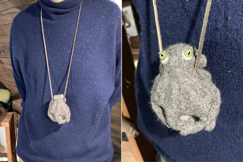 なめらかでしっかりとした仕上げ作業の前に撮影したので、この時点ではモケモケです。この後、お渡し時点ではなめらかでしっかりのケェロモンになります。